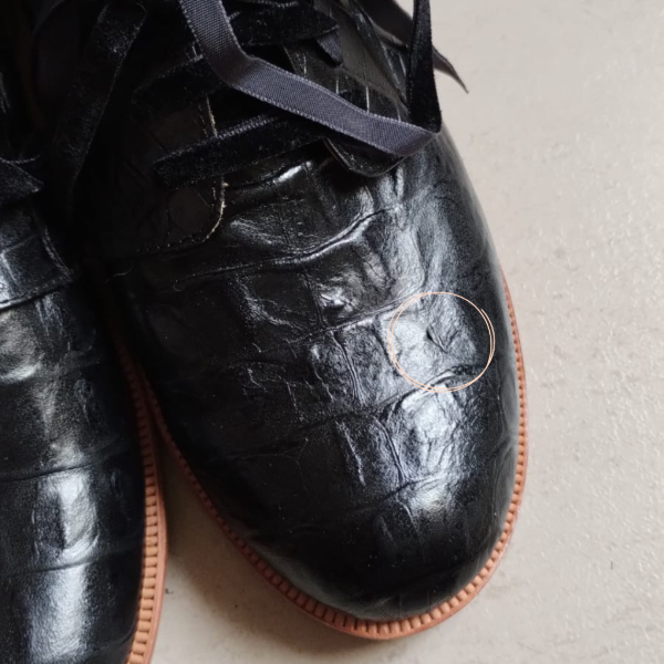 Estos zapatos tienen un detalle mínimo por falla en el cuero en la puntera del pie.