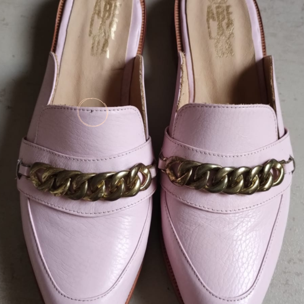 Mocas sin Talón de Cuero Rosa con Cadena.