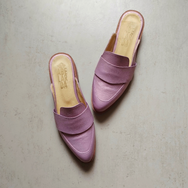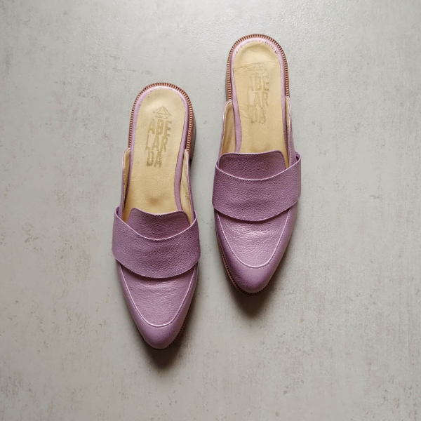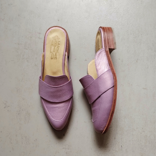 Mocas sin Talón de Cuero Rosa Metalizado.