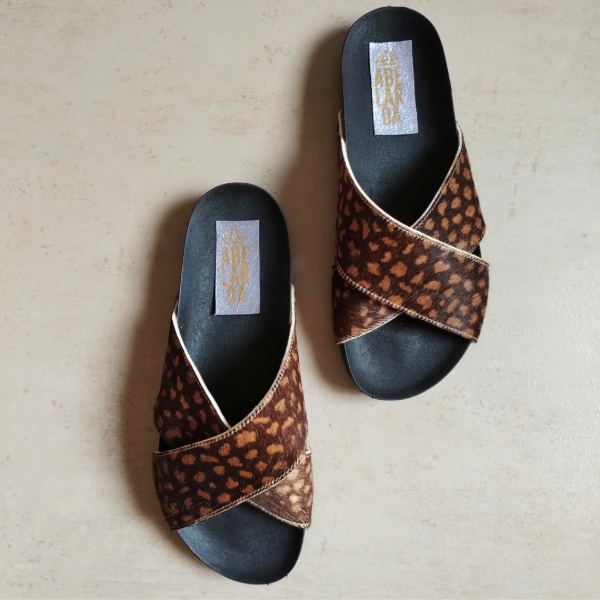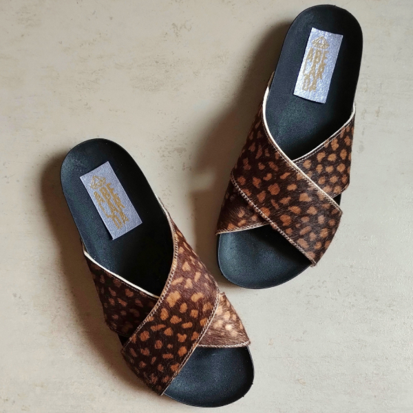 Chatas con Base anatómica super cómodas, con tiras cruzadas en Cuero de Pelo Chita.