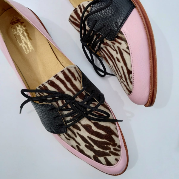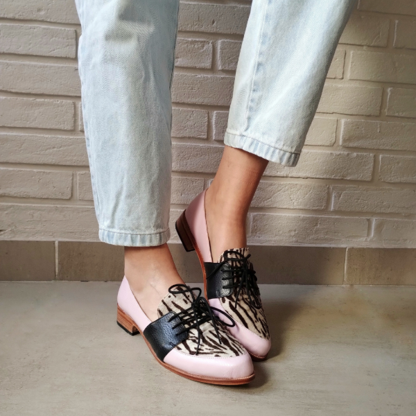 Acordonados de Cuero Rosa combinado con Negro y Pelito de Cebra.