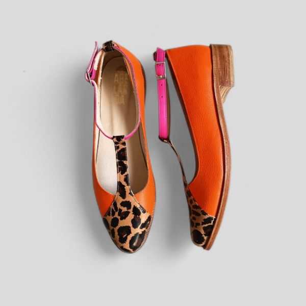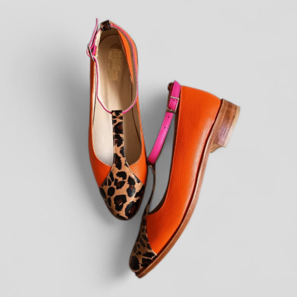 Guillerminas en Cuero Naranja, Leopardo y Fucsia.